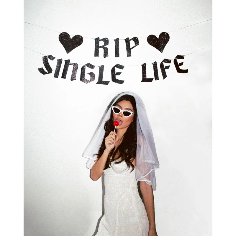 RIP to the single life with this unique party banner. Printed on card stock with glitter paper it's sure to be a spot where everyone wants a selfie!
